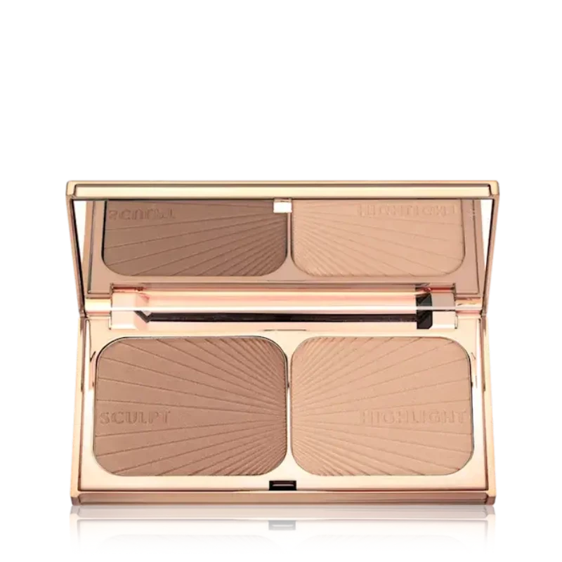 Charlotte Tilbury Filmstar Bronze & Glow is your must-have two-in-one contour and highlighter palette, perfect for sculpting cheekbones and enhancing natural radiance. Designed for tan to deep skin tones, this luxurious compact gives a sun-kissed bronze and a candlelit glow in one easy step.