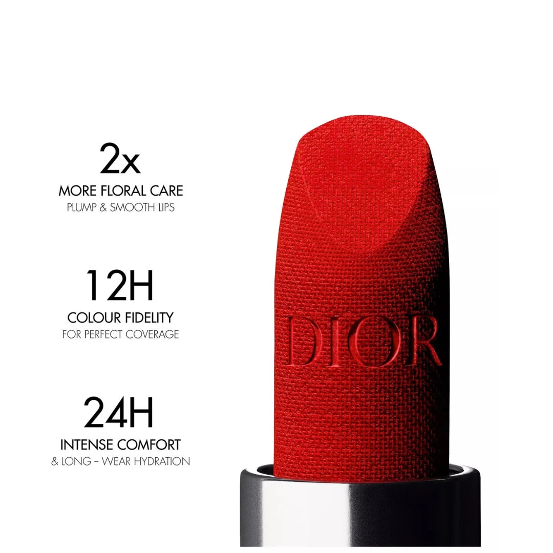 Dior’s iconic lipstick delivers couture color with a luxurious velvet-matte finish, designed to enhance lips with long-lasting comfort and elegance.