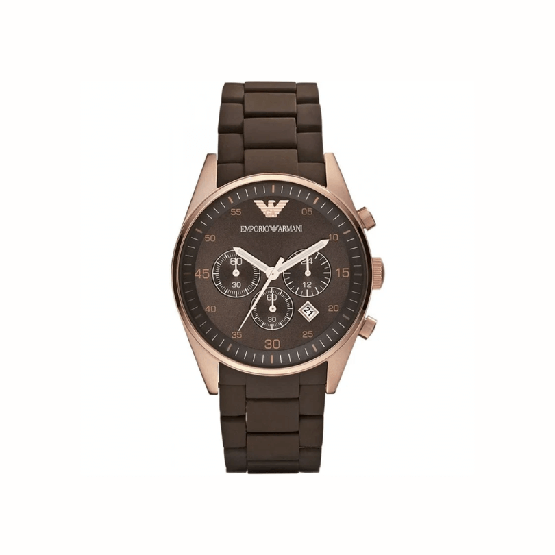 Emporio Armani Men's Chronograph Brown Dial 43mm Watch (AR5890): With a bold 43mm brown dial and chronograph functionality, this Emporio Armani watch combines elegance and practicality for the modern man.