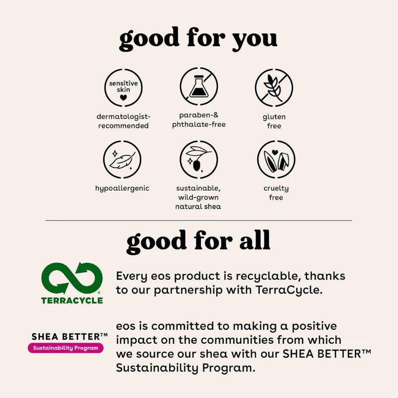 From the moment you twist open this sealed balm, you’re enjoying the authentic eos experience — dermatologist-recommended, cruelty-free, and crafted with care for sensitive skin. With sustainably sourced shea butter and protective antioxidants, this formula locks in moisture and keeps your lips smooth all day long.