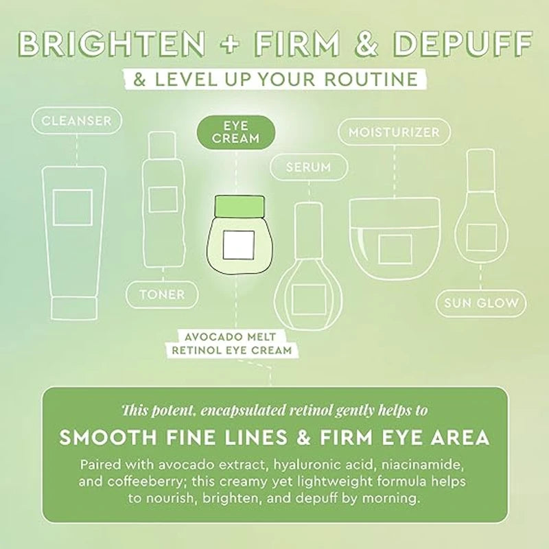 Wake up to brighter, firmer, and refreshed under-eyes with the Glow Recipe Avocado Melt Retinol Eye Sleeping Mask — now available to buy original in Pakistan, exclusively at Lifector. This rich yet gentle overnight eye treatment blends avocado extract + encapsulated retinol to smooth fine lines, reduce puffiness, and restore a well-rested glow by morning.