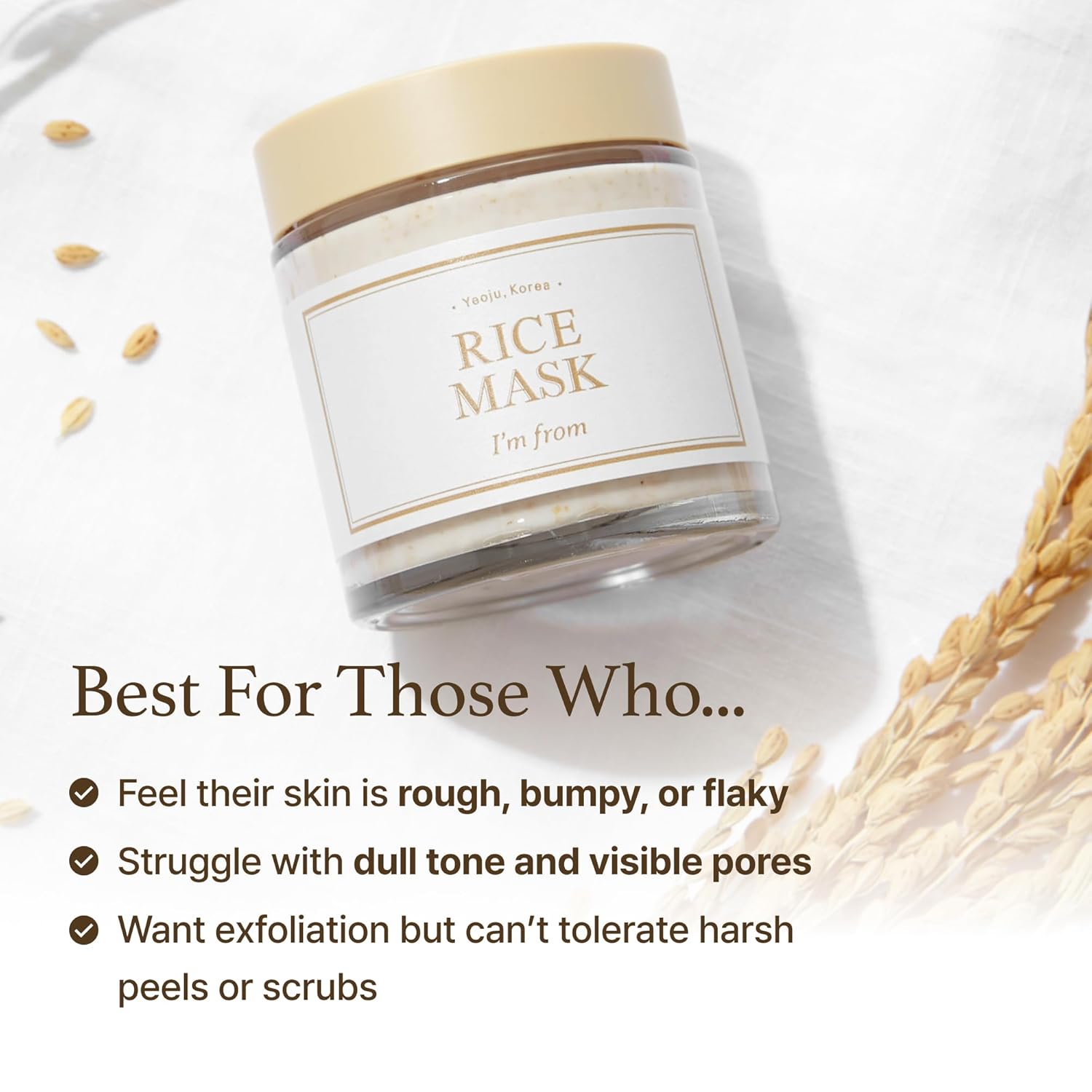 Unlock smoother, clearer skin with the Rice Mask — a creamy exfoliating treatment by I’m From designed to reveal a radiant complexion while you relax. This gentle polish-mask blends fine rice grains and natural extracts to buff away buildup and refine texture.
