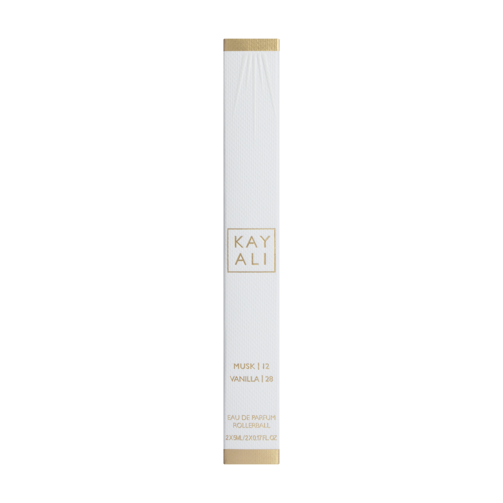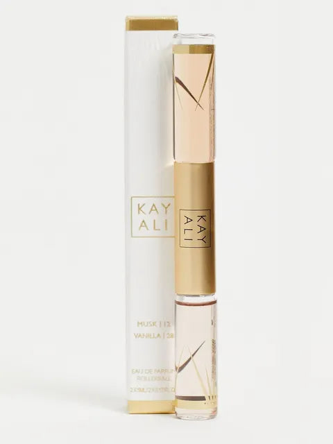 Kayali Rollerball Eau De Parfum Musk | 12 & Vanilla | 28 is an imported luxury pairing designed for versatility and personalization. Musk | 12 offers a clean, intimate skin-scent, while Vanilla | 28 delivers rich, addictive sweetness—perfect alone or layered together for a signature, sensual aura.
