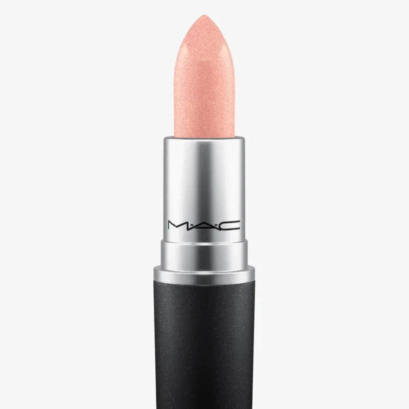 Add a touch of shimmer with MAC Oh Yes, Baby! Lipstick, a frosted peachy nude shade with a lustrous finish.