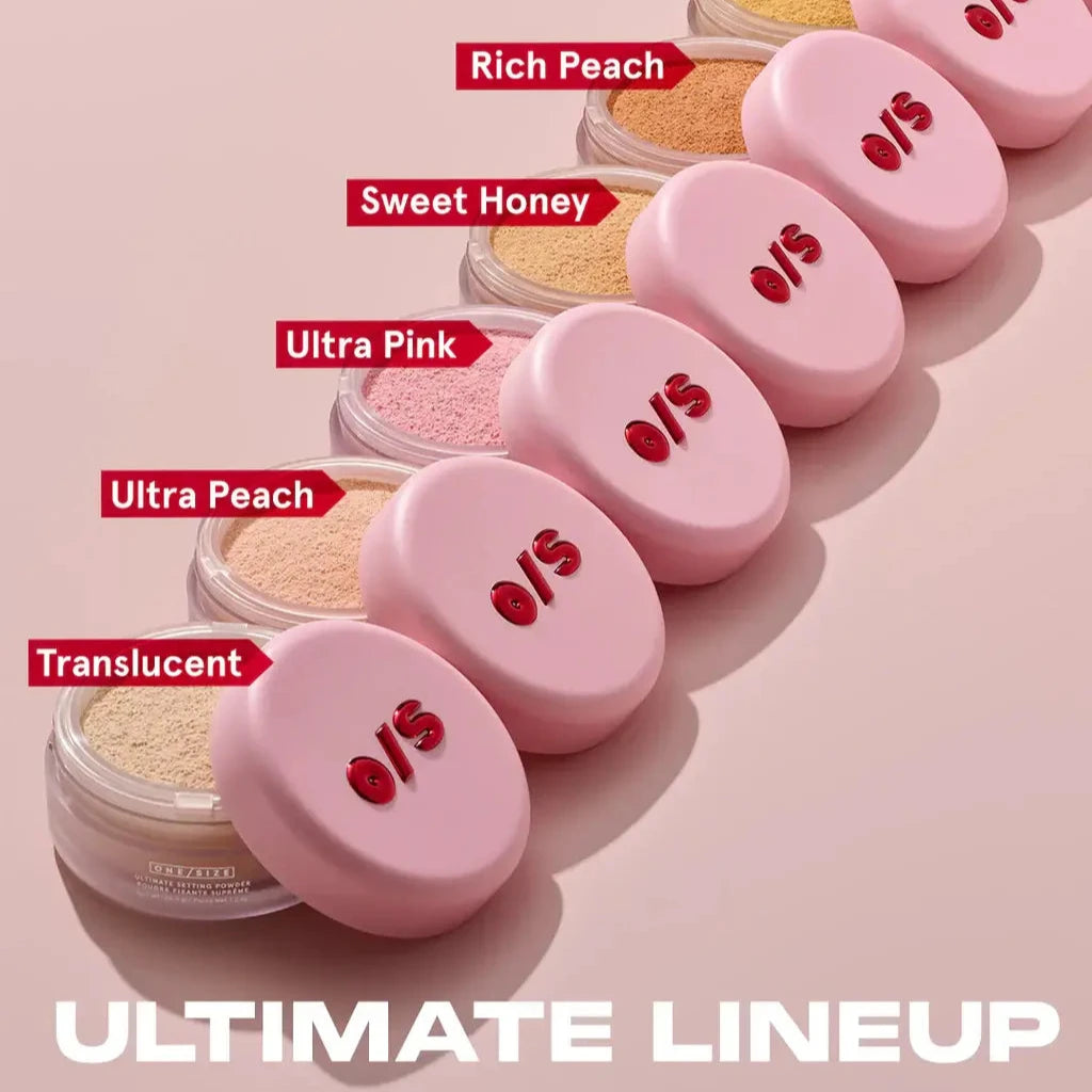 ne-free finish with the One/Size Beauty Setting Powder! This lightweight, translucent powder is designed to set your makeup for hours, ensuring your look stays fresh and flawless throughout the day. Infused with light-reflecting properties, it blurs imperfections while controlling shine, making it the perfect finishing touch for any makeup routine.