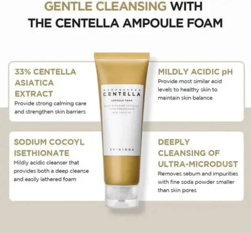 SKIN1004 Madagascar Centella Ampoule Foam is a luxuriously gentle Korean facial cleanser formulated with pure Centella Asiatica extract to deeply cleanse while soothing sensitive and acne-prone skin. Its ampoule-infused creamy texture creates a rich, cushiony foam that removes impurities without stripping moisture—perfect for those searching to buy original Centella Ampoule Foam in Pakistan.