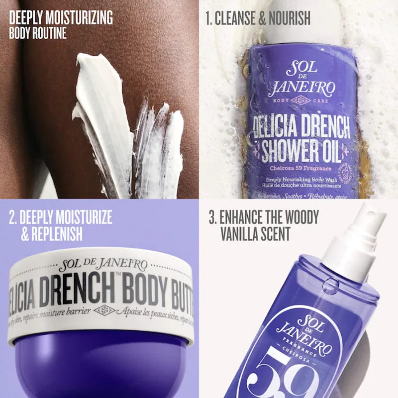 Sol de Janeiro Delícia Drench™ Body Butter — A rich, whipped body butter that locks in deep moisture while repairing the skin’s protective barrier and calming redness.